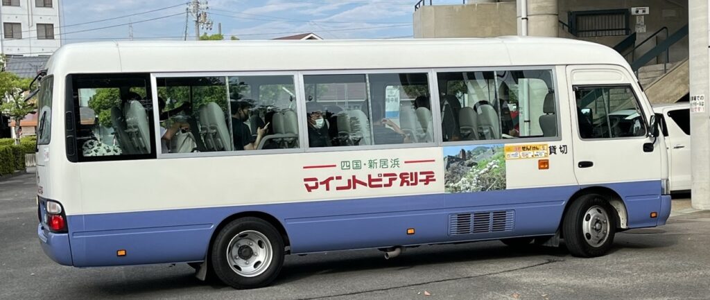 バスは7:20頃から待機しています。(マイントピア別子のマイクロバス)